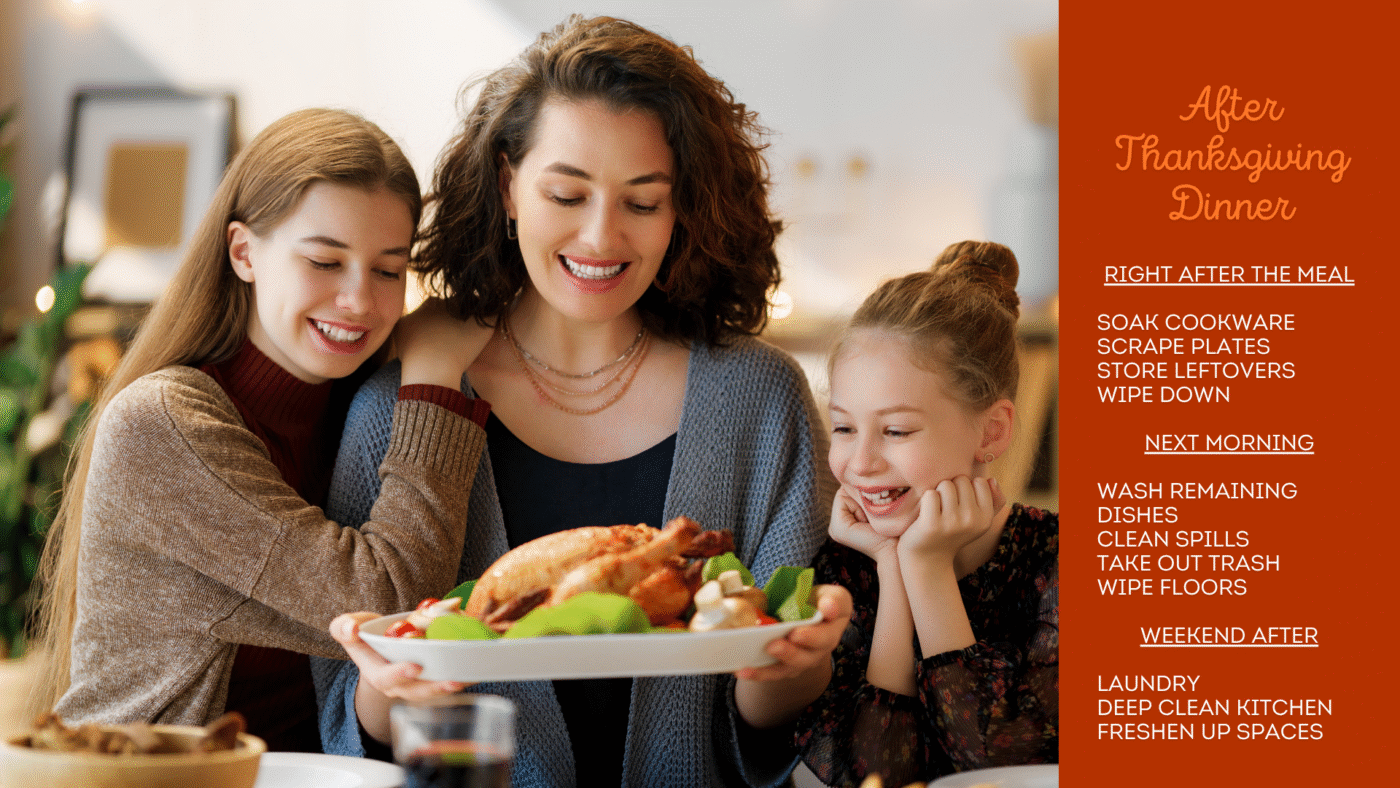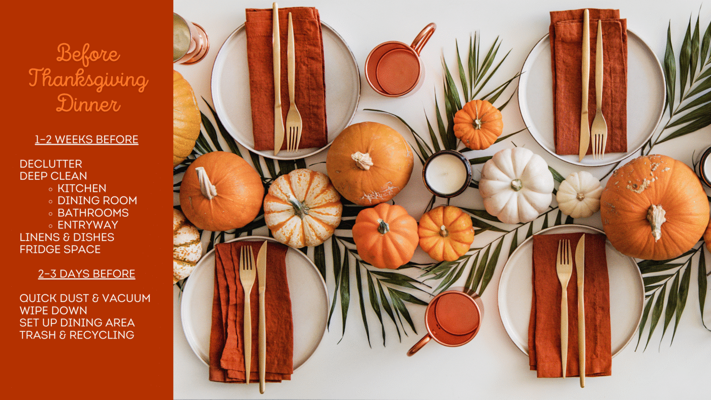 Here’s a practical Thanksgiving Cleaning Plan, split into Before and After: